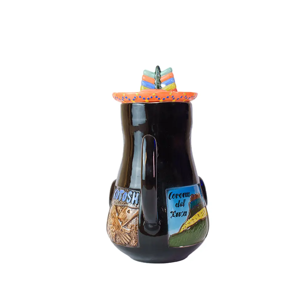 Jarra de cabeza de negrito de cerámica de 1.5 litros, con atractivos turísticos de Kotosh y Corona del Inca